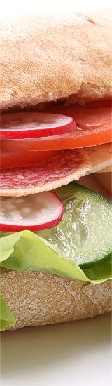 Salat, Baguette, Dessert, Getränke